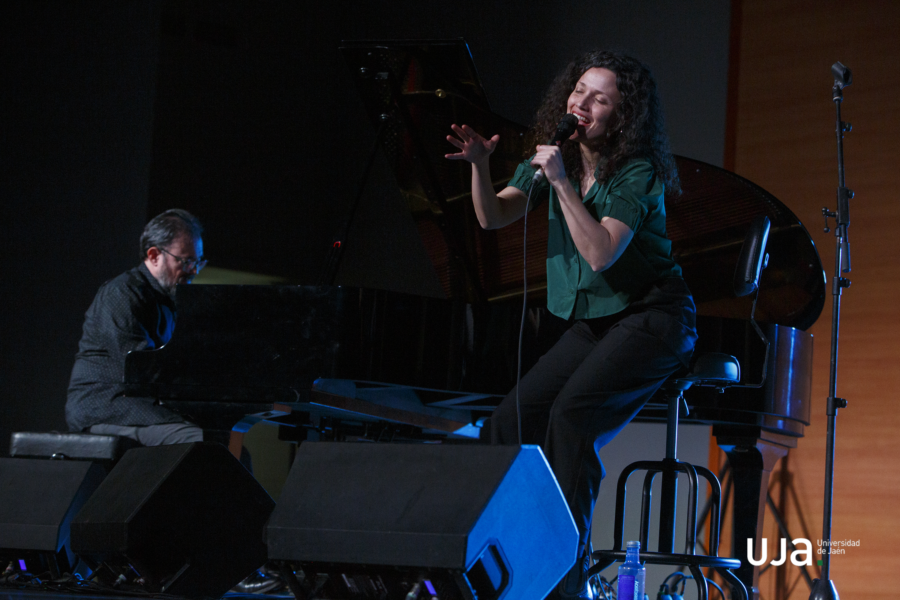 El Aula Magna de la Universidad de Jaén acogió el pasado 19 de febrero el concierto de la cantante Sheila Blanco y el pianista Federico Lechner, celebrado en el marco de las actividades formativas del Máster de Profesorado de Secundaria e integrado en la programación del Vicerrectorado de Cultura. Antes del concierto, ambos artistas mantuvieron un encuentro con el alumnado de la especialidad de Música del máster, en el que compartieron su experiencia profesional y reflexionaron sobre los procesos creativos, la interpretación y la fusión de estilos musicales.
