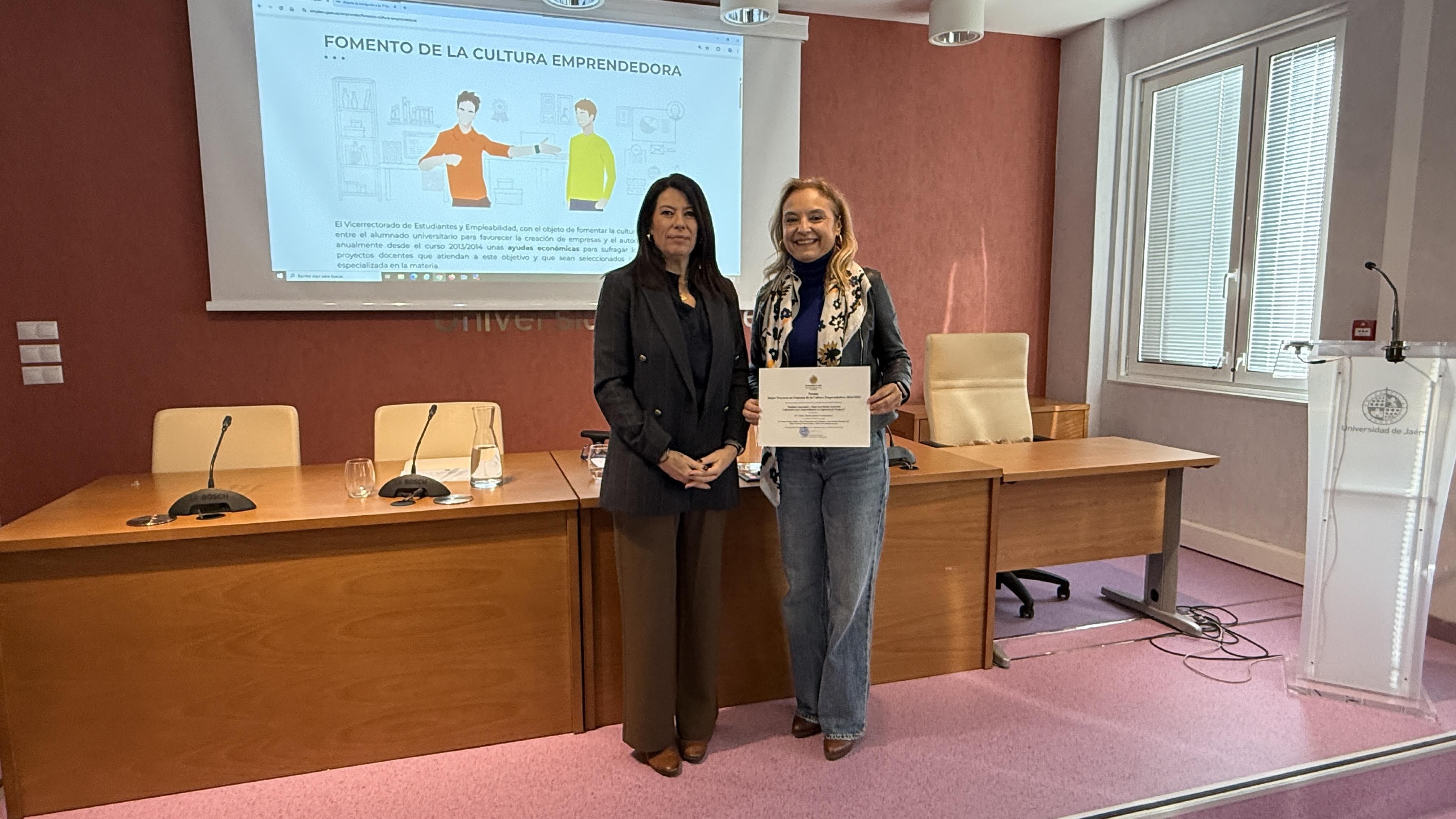 La Universidad de Jaén, a través del Vicerrectorado de Estudiantes y Empleabilidad, reconoció el emprendimiento de su alumnado y profesorado, con la entrega de los premios a los Mejores Proyectos de Fomento de la Cultura Emprendedora (convocatoria 2024/2025), los premios de la 1ª Fase del programa INSIDE UJA 2025/2026 y los reconocimientos al profesorado participante en INSIDE UJA 2024/2025.