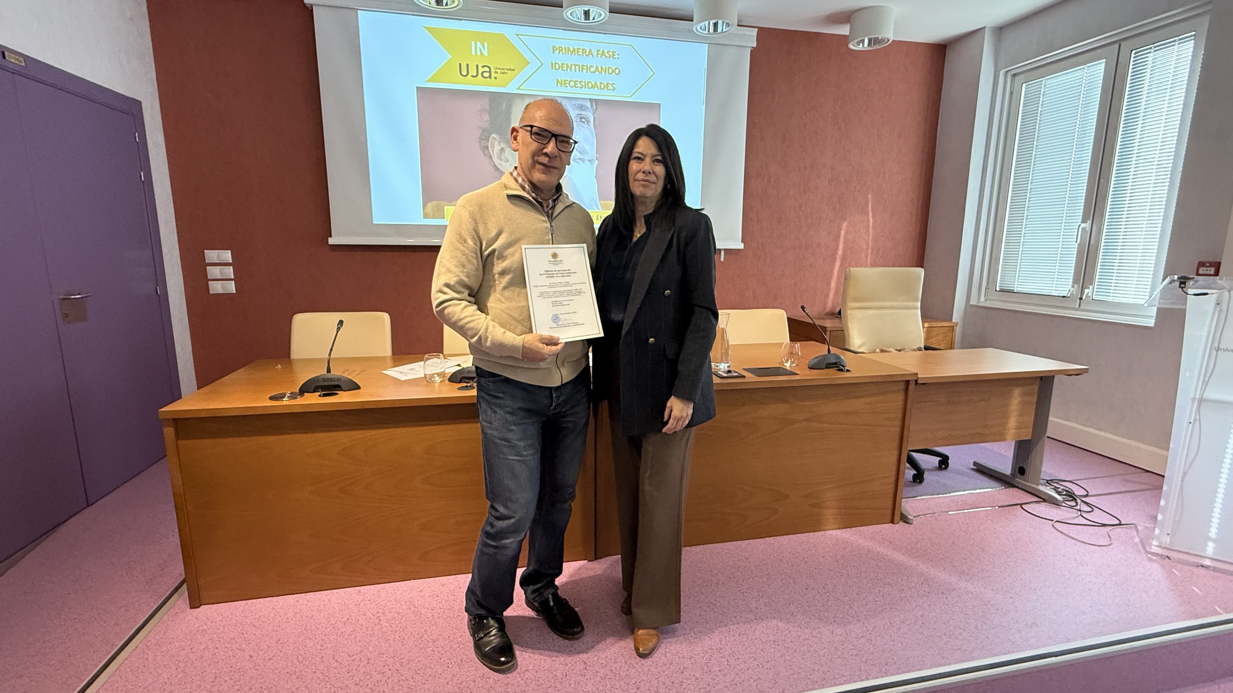 Por último, por segundo año consecutivo, el Vicerrectorado de Estudiantes y Empleabilidad reconoció al profesorado de la UJA participante en el programa de emprendimiento INSIDE UJA en la edición 2024/2025. Se trata de: José García Vico, Antonio Mesa Jiménez, Ana Belén Mudarra Fernández, María Dolores La Rubia García, Lucas Antonio Cañas Lozano, Domingo Fernández Uclés, Alicia Isabel Peragón Márquez, José Luis Durán Román y Cristina Martín Doñate.