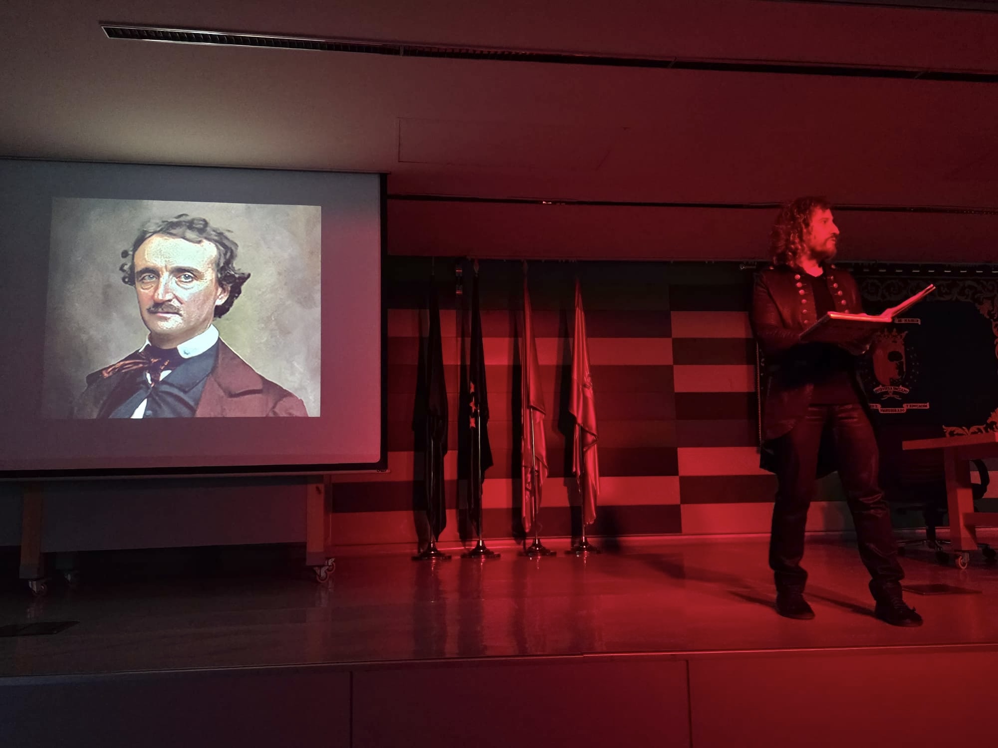 La puesta en escena, cuyo diseño artístico estuvo a cargo de Laura Blázquez Cruz, ofreció una propuesta dramática de carácter experimental que explora los límites entre el diálogo y el monólogo, invitando al espectador a adentrarse en los espacios más oscuros de la conciencia humana y la creación literaria, en sintonía con el universo literario y la galería de motivos fundamentales del corpus literario de Edgar Allan Poe. A través de una combinación de dramatización, análisis textual y reflexión crítica, los investigadores plantearon una lectura performativa que conecta la obra del autor estadounidense con manifestaciones contemporáneas de la cultura popular. En este sentido, el espectáculo se constituyó como una aproximación a la obra literaria de Edgar Allan Poe, incidiendo en su faceta como poeta y en los temas angulares de su producción en verso, ficcionalizando y reescribiendo tanto contextos de creación como operatividad de símbolos y fundamentos de creación, tales como el ritmo, la musicalidad o los campos semánticos.